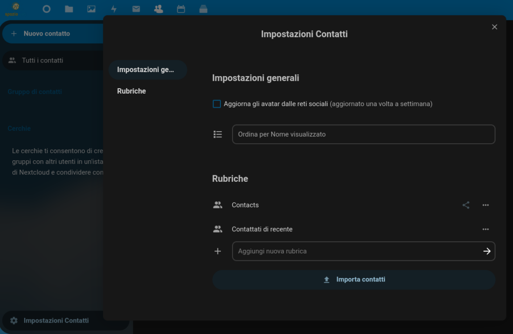 La nuova Webmail fa parte di una piattaforma cloud in cui è presente un’ app apposita per la gestione dei contatti: nella barra di menu visibile in alto nella pagina principale della Webmail c’è l’icona
