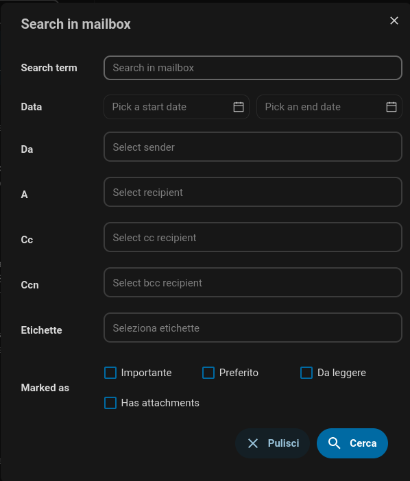 ..ma anche sulla presenza di etichette o marcature (preferito, da leggere, importante), settate manualmente alla ricezione di nuovi messaggi o sui messaggi già ricevuti.