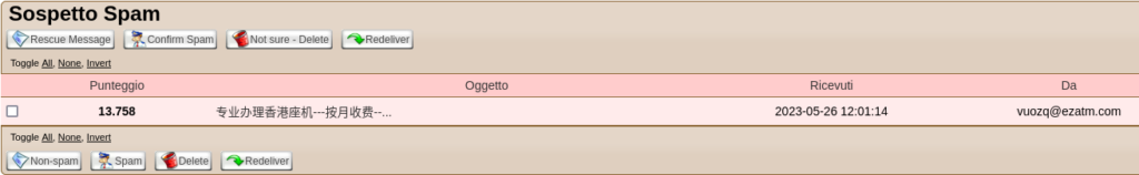 Nel caso di ricezione di messaggio indesiderato, è possibile segnalare l’email al nostro sistema di filtraggio antispam direttamente dalla webmail: senza aprire l’email stessa la si deve selezionare dall’elenco, cliccare sui 3 puntini sulla destra e dal menu presentato selezionare “Marca come posta indesiderata”. Intervenendo in questo modo si va ad istruire il nostro filtro, non si mette l’indirizzo del mittente nella “Lista nera”. Per impostazioni più specifiche si deve fare accesso al pannello del filtro, accessibile direttamente a questo link ed autenticandosi con le proprie credenziali di posta.
