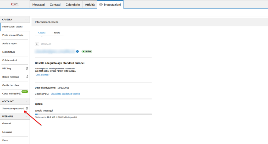 Verificate e tenete sempre aggiornata la Mail di riferimento, che si imposta nella pagina “Titolare” delle configurazioni PEC una volta entrati all’indirizzo https://gestionemail.pec.gespec.it/